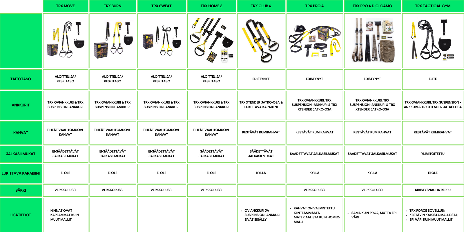 TRX VERTAILUTAULUKKO